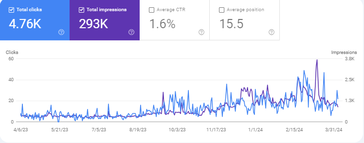 I expected traffic to drop or maybe even penalized since I published the posts right before the March 2024 spam update rolled out. Nothing happened.