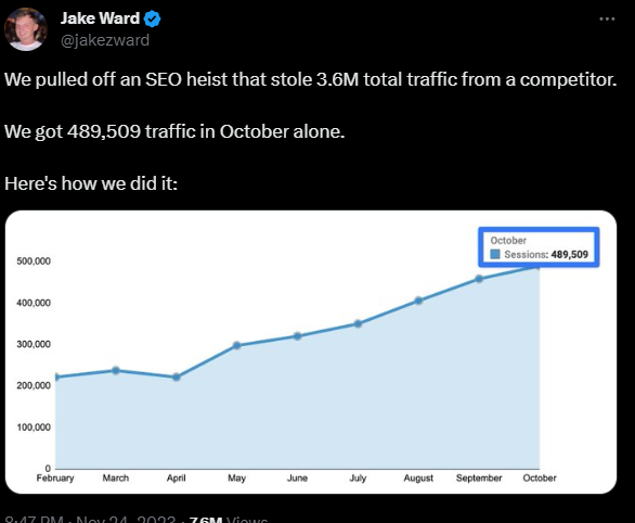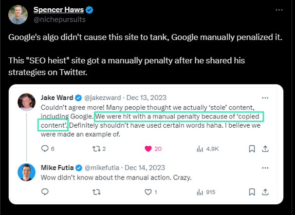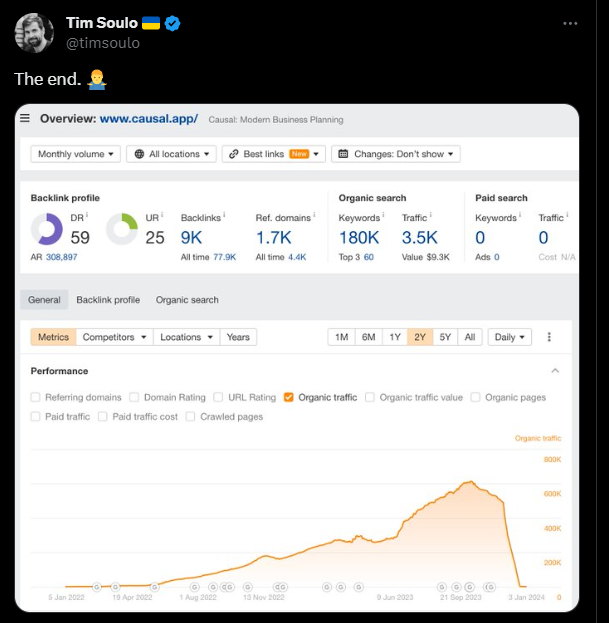 Going back to Jake's case study, the traffic dropped not because of an algo update by Google. They were slapped with a manual penalty.